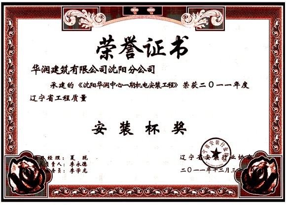 2011年度辽宁省工程质量安装杯奖