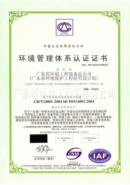 产品名称: 环境管理体系认证证书 |