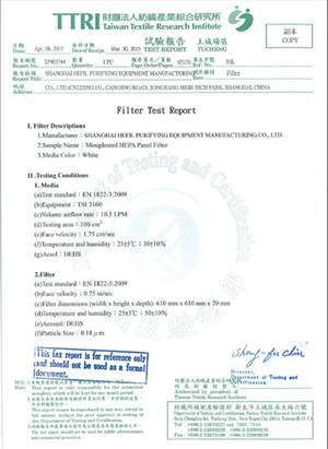 上海禾益净化设备制造有限公司TTRI证书
